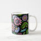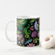 "En mugg med vattentäta blomutformningar, där färg blandas med invecklade detaljer för att skapa en design som förkroppsligar naturens skönhet. Blommorna förblir levande och fortsätter att skina över tiden, vilket tillför lite elegans och färskhet."