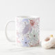 "En mugg med vattentäta blomutformningar, där färg blandas med invecklade detaljer för att skapa en design som förkroppsligar naturens skönhet. Blommorna förblir levande och fortsätter att skina över tiden, vilket tillför lite elegans och färskhet."