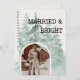 Gratulerar till din första julhelg som nygifta med det här vackra, personlig helgdag "Gift och ljus"! Det här kortet är en vattenfärg för gräs träd och ett bågformat foto ram för bröllop bild och är perfektens blandning av elegans och charm. Framsidan visar ett typsnitt av vintagen skrivmaskin-stil och lägger till en tidslassig tryckning. På baksidan, ett hjärtligt budskap till familj och vänner, skapar det inte bara ett helgdag-kort, utan också ett sött sätt att tacka gästerna i bröllop. Perfekt för att sprida glädje och tacksamhet denna julhelg!