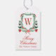 Vattensfärgad jul Topiary Monogram Vapensköld Presentetikett