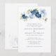 Anpassa den moderna botaniska Blommigten Bröllopsinbjudan genom att klicka på "Anpassa" ovan. Kortet har en modern elegant chic dammig blåa blommor med vit, ljusblå och oliv grönt blomning. TIP: Underbar för överraskande party, babyduschar, bröllopsmottagning och pension party.