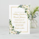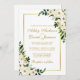 Blommigt för vattenfärg, botanisk Grönt och vit med Guld Ram bröllopsinbjudan med Guld