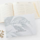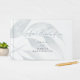 Bröllop Guest Bok | Modern dammiga blå blek halvgenomskinliga löv som täcker hela täckningen av detta gästboksverk ge är en mycket elegant modern vädjan. En kombination av skriptcalligrafi kombineras med ett minimalistiskt teckensnitt av contemporary stil. Detta är en del av en bröllop-stationär samling med matchande tillbehör till bröllop. Design skapat för BarefootBride™ © by WhimsicalArtwork™