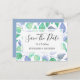 Vattenskärg Dusty Blue Löv Bröllop spara datum Meddelande Vykort