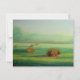 Mistoriskt på morgonen vackert grönt med färskhö - elegant vattenfärgsmålning -