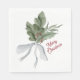 Vattenfärgad handmålning gjord med underbar omsorg för den här vattenfärgade julnapkin. Blånet, grenar och frukterna inspirerades av traditionella julminnen, med en rik av grönt, rött och neutralt... och trimmade med ett vackert båge. Avslutat med festiv, elegant God jul typografi.