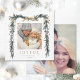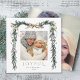 På det här helgdag i eleganten finns ett fyrkantigt kort med vattenfärgen gräs gren ram (gräns) i guld, rosett band, hullbär och botaniskt grönt, tillsammans med ett extra foto på baksidan. Skicka julhälsning till familj och vänner.
