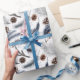 Papper julomslutning med illustrationer av gräs, bär och grenar av barrträd träd i blått, grått och brunt färg. Snygg julomslutning papper för vem som helst, särskilt för älskare.