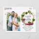 Modern Elegant Watercolor Grapes and Vines Wood Wandeann Spara Bröllop-anteckningens vykort - Foto med två Förlovningar