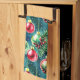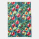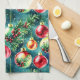 Kökshandduk i digital vattenfärg mönster av julprydnadsföremål och bär, mot snöbakgrund, i mjuka skuggor av röd och teal grönt