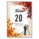 Det elegant vattenfärgen blommigt bröllop bordsnummer är perfekt för ett modernt bröllop. Den romantiska designen har en vattenfärgsfärgad elegant ram med en blommigt- och trimbild och svart kalligrafi på vit bakgrund.