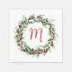 Julandetag med monogram Handmålad vattenfärgad andedräkt på en napkin. Ge din jul Party och extra personliga beröring