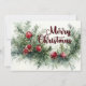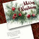 Vattenskärtad julfärgad Blommigt Spray Red-Grönt Kort