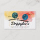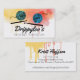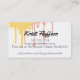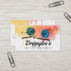 Vattenfärgad stil-droppbakgrund med kroketen krok och bollar av garn i ditt val av färg på det här affärskortet för en krokett eller garnvagn.