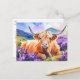 Ett charmerande vykort för vattenfärg med en skum skotsk högreko som vilar i lila Heater. Underbar för att skicka anteckningar, presenter eller rama som jordskred.