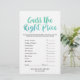 Den här kalligrafin "gissa högerna pris"-matchen är perfekt för en babydusch för sommarpojkar. Spelkortets framsida innehåller "gissa högerna pris" och kortets baksida innehåller "vad som finns i din mobila". Roligten och den energiska designen har ett söt teal-grönt och vattenblått vattenfärgsskript. Anpassa kortets framsida med namn i mamma till att bli bebisduschdatum. Du kan anpassa spelfrågorna genom att klicka på knappen "anpassa".