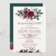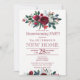 Chic elegant inbjuden invigningsmall för blommigt för uppvärmningspartiet med vattenfärgad burgundi och vit peony ro bouquet med gräs säsong fir grenar, rött bär och löv. Fyll i informationen på plats. Du kan välja att anpassa den genom att ändra bakgrunden färg, typsnitt och färg för text. — Inbjudan är lämplig för elegant vinter/jul party. — Kontakta mig om du behöver hjälp!
