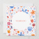 Modern botanisk vattenfärgsmålning av blåblommor och orange vild på vit bakgrund. Ett fantastiskt passande kort för att tacka dina gäster i bröllop för en underbar dag.