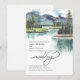 Sjöar, som målats med vattenfärg i bergsskogen, är det bästa i denna utformning, medan inbjudan balanserar upp den och skapar en vacker, naturlig inbjudan.