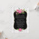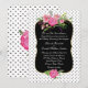 Snyggt och romantisk bröllopsinbjudan, som gjorts i vit bakgrund, med litet svart polka dots. Ett dekorativt svart textområde i guld, mitten på inbjudan, har vackra vattenfärgsbilder av rosa peonblommor. Anpassa den vita texten till din speciella dag. Matchande produkter är tillgängliga.