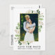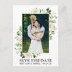 Modern Watercolor Eucalyptus Greenery White Flowers Ram sparar datummeddelande för Förlovning av fotomeddelande vykort - Guld Ram