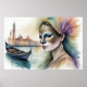 Vattentärsfärg målning av hondjur med venetiansk m poster
