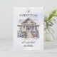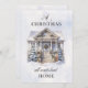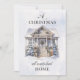 Varm och konstnärlig återgivning av ett mysigt snö-täckt hem med Juldekorationer och "Vid jul leder alla vägar hem" citat i anpassningsbar textbild. Bakåt har redigerbar fält.