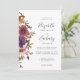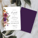 Den lämnat kant i denna romantiska bröllopsinbjudan har en blommigt av vattenfärg av plommon lila, rost, blommor och kopparblommor och grönenergi. Anpassadet kombinerar handskrift, tryckplåt och kursivt typsnitt i grått i kol mot vit bakgrund. Baksidan är en samordnande solid lila. Idealisk för ett fallbröllop!