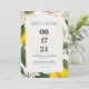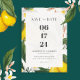 Lenon symboliserar lyx, kärlek och livslängd. Den här inbjudan från elegant bröllop innehåller handmålad citron och vita blommor på en texturerad vit bakgrund som skapar en snyggt och bjuder in atmosfär.