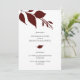 Fira natten före bröllop med våra inbjudningar till högstämningsmiddagen för bröllopsfesten, med en toppboarder av minimalistiskt burgundi löv. Perfekt för ett hösttema fångar dessa inbjudningar det centrala i bröllop med ett minimalistiskt tema. Perfekt för fallfestligheter, den här repetitionsmiddagen inbjudan är designad för att transportera dina gäster till en serenställning. Den moderna bladkonsten tillför en aning klassisk charm och skapar dem ett fantastiskt val för alla stil bröllop firande. Med vår mall för enkel använda kan du enkelt anpassa dina bröllop-upprepade middagsinbjudningar utan problem. Unik, enkel konst och design av Victoria Grigaliunas från Do Berätta för A Belle. Om du vill se fler design som denna går du till Do Berätta för en Belle på Zazzle www.zazzle.com/dotellabelle.