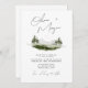 Den här elegantens målbröllop har en romantisk vattenfärgsmiljö med berget, gräs träd och perfekten för grönskog för din bergsdröm bröllop och ett komplicerat manusjettsteckensnitt för manusjus på namn ge en mer rustik vibe. OSA, resor och inkvartering kan noteras längst bak tillsammans med bröllop webbplats eller länk som innehåller en QR-kod.