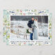 Modern Elegant Vatercolor Blue and White Blommigt God jul Bröllop Photo Helgdag Card omfattar botaniska grönska löv på vintern, blåbär, blåa blommor, bomull och röda bär.
