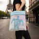 Vattfärg Blue Teal Sea Turtle on Peach Monogram Tygkasse