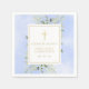 Den här chic blå heliga-napkin med löv för eukalyptus i guld med elegant crucifix kan vara personlig med dina speciella firande-detaljer i modern guld-typografi. Designad av Thisisnotme©