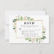Modern Elegant Watercolor Eucalyptus Greenery White Flowers Guld Ram Bröllop OSA Card