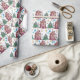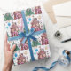 Förpackning papper med en vit vattenfärgsfejd mönster som illustrerar ett drömt och magiskt julunderland med chokladhus omgivna av candies, Lollipops, bomullskandy, lampost, ljus, ängelklocksljus och Julgranar med söta kardinalfåglar och deras fågelhus på dem. Mönster är handmålat med kärlek. Designad av Negin Mehrabifard.