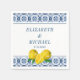 En söt citron bröllop napkin dekorerade citroner och italiensk blå bricka. Perfekt för din italienska blåa lompa bröllop. Anpassa den med namn från bruden och brudgummen. Designad av Blackberry Boulevard.