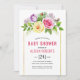 Vattentärsfärgade bukett med rosor vår och rosa blommigt Flickduschinbjudan. Det visar upp en fantastisk bukett av rosa, gult och lavender ro och löv och en guld foil gräns. Baksidan är av solid rosa färg.