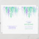 Dubbla-sidiga vinblommor lösviktsfärgsbilder på ett bröllopsprogram med vit bakgrund. Söt blå och rosa. Redigera det här bröllopsprogrammet med ditt eget namn, data, ceremonin, bröllopsfestens medarbetare och tack. Ett enkelt program för elegant ersätter bara exempeltexten med bröllop-informationen och delar upp program till hälften vid leverans. Modern och romantisk ceremoniseringsprogram i bröllop. Ursprunglig vattenfärgsmålning och design av Sarah Trett för www.mylittleedenweddings.com