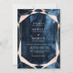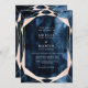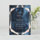 Inbjudningar till Watercolor Chic Navy Blue Baby Shower - har handskriven text och elegant, vit skripttext med rosa - gyllene geometrisk ram på marinblå vattenfärgsbakgrund i struktur. Den omvända sidan av inbjudan är också marinblå vattenfärgen struktur. Gör bröllop minnesvärd och smart med den här eleganten mörk marble-samlingen.