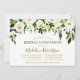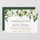 Modern Elegant Watercolor Grönt White Blommigt Möhippa Luncheon-inbjudan omfattar vit ros-peonier och andra vackra gröna grejer. Trendig Calligraphy Script. Guld