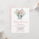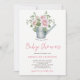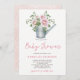Vintagens vattnande burk med vackra vita rosa ros bouquet skapar en elegant rustik tjej-duschinbjudan. Kortet har en vit bakgrund på framsidan och ett geometriskt mönster på vattenfärg tvättat bakgrund på baksidan. Den har ett kalligrafiskt skript i finare och en modern textskrift i contemporary.— Perfekt för en romantisk dusch i party i land-chicen, vår eller sommaren elegant.