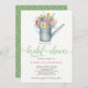 Vintage kan vattnas med blommor av vår och sommar-multifärgad och skapar en elegant rustik pastellfärgning av vattenfärgen blommigt inbjudningskort för möhippan. Kortet har en vit bakgrund på framsidan och en geometrisk mönster på sidans grönt (redigerbart färg) på baksidan. Den har ett kalligrafiskt skript i finare och en modern textskrift i contemporary.— Perfekt för en utomhus, trädgård i vår eller elegant i land i chic party.