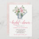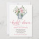 Vintage kan med vackra vita rosa ros bouquet skapar en elegant rustik pastellfärgad blommigt inbjudningskort för möhippan. Kortet har en vit bakgrund på framsidan och ett geometriskt mönster på vattenfärg tvättat bakgrund på baksidan. Den har ett kalligrafiskt skript i finare och en modern textmarkering i contemporary.+++++++++++++++ Idealisk för en romantisk dusch i party i en utomhus, trädgård i vår eller sommar elegant i land.