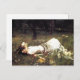 John William Waterhouse Ophelia vykort. Oljemålning på arbetsyta 1889. Den engelska målaren John Waterhouse målade många skildringar av Hamlets Ophelia under hela sin karriär. Denna version från 1889, hans tidigaste version, är kanske hans mest häpnadsväckande och dynamiska. Ophelia lägger i fält mellan vita och gult vilda blommor och högt gräs. Hon bär en enkel, men elegant vit klänning när hon springor handen genom sitt mörk bruna hår. En underbar gåva till fläkt av J.W. Waterhouse, Shakespeare, litterär målning, Pre-Raphaelites och engelsk Romantisk konst.