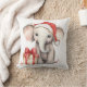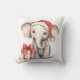 Cute vattenfärgselefant som bär en julhatt med en julklapp på vit bakgrund.
