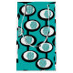Den här presentväskan har en modern design av linjer som skapar cirklar inuti ovaler som är fulla av turkos, svart och vitt.