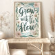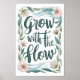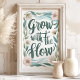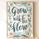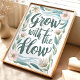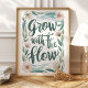 Omfamna skönheten i förändring och anpassningsförmåga med detta lugna konsttryck "Väx med flödet". Med en handskriven citat i lugnande nyanser av grönt och blått, omgiven av ömtåliga blomsterdekorationer, påminner detta konstverk varsamt om att släppa taget om motstånd och finna frid i livets naturliga rytmer. Perfekt för att tillföra en touch av stillhet till din hemmiljö eller kontorsdekor.
