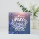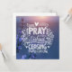 Uppmuntra någon med denna moderna typografidesign som innehåller meddelandet: "Pray without stop. Den designade typen har blommigt-, hälso- och grönsaksaccenter på lavender sunset-bakgrunden. Inuti finns ett helt anpassbart budskap: "Gud är vår tillflykt och styrka. De som tittar på honom är strålande. Deras ansikte får aldrig skam. Släng all din oro på honom, för han bryr sig om dig. Jag ber för er också."