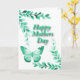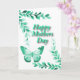 växter som ramar in övre vänstra och nedre högra hörnet med en fjäril längst ner till vänster på bilden med texten “Happy Mothers Day” i mitten, allt i grönt med vit bakgrund av martinspixs.